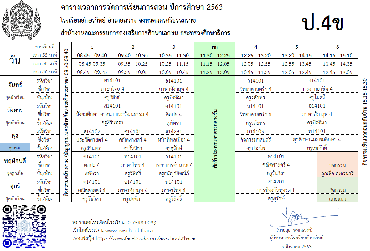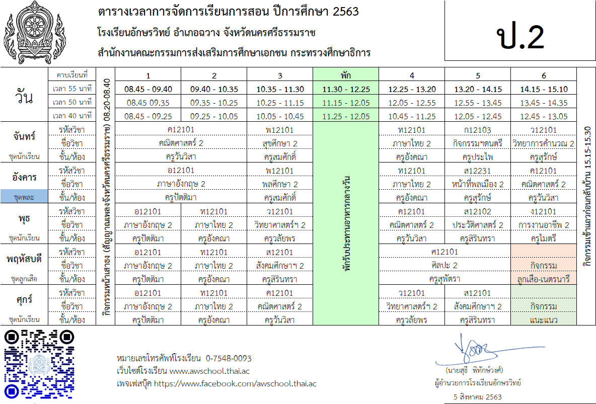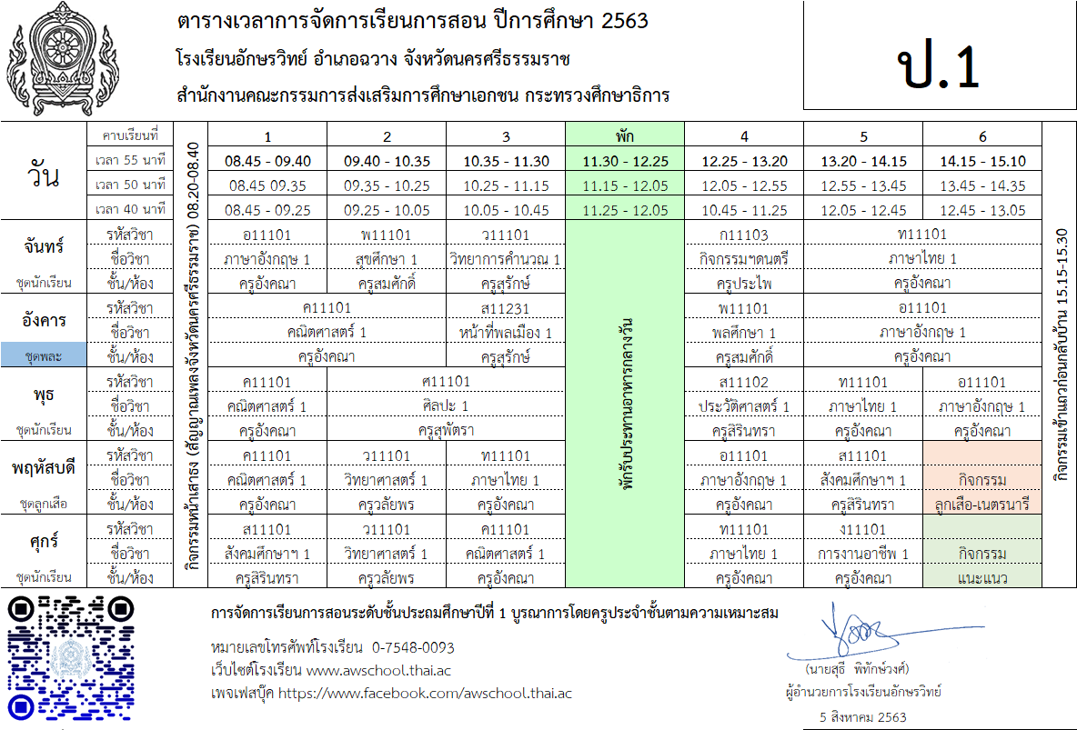 | ตารางเรียน ปกศ.2563 | ครั้ง | วันที่ | ||