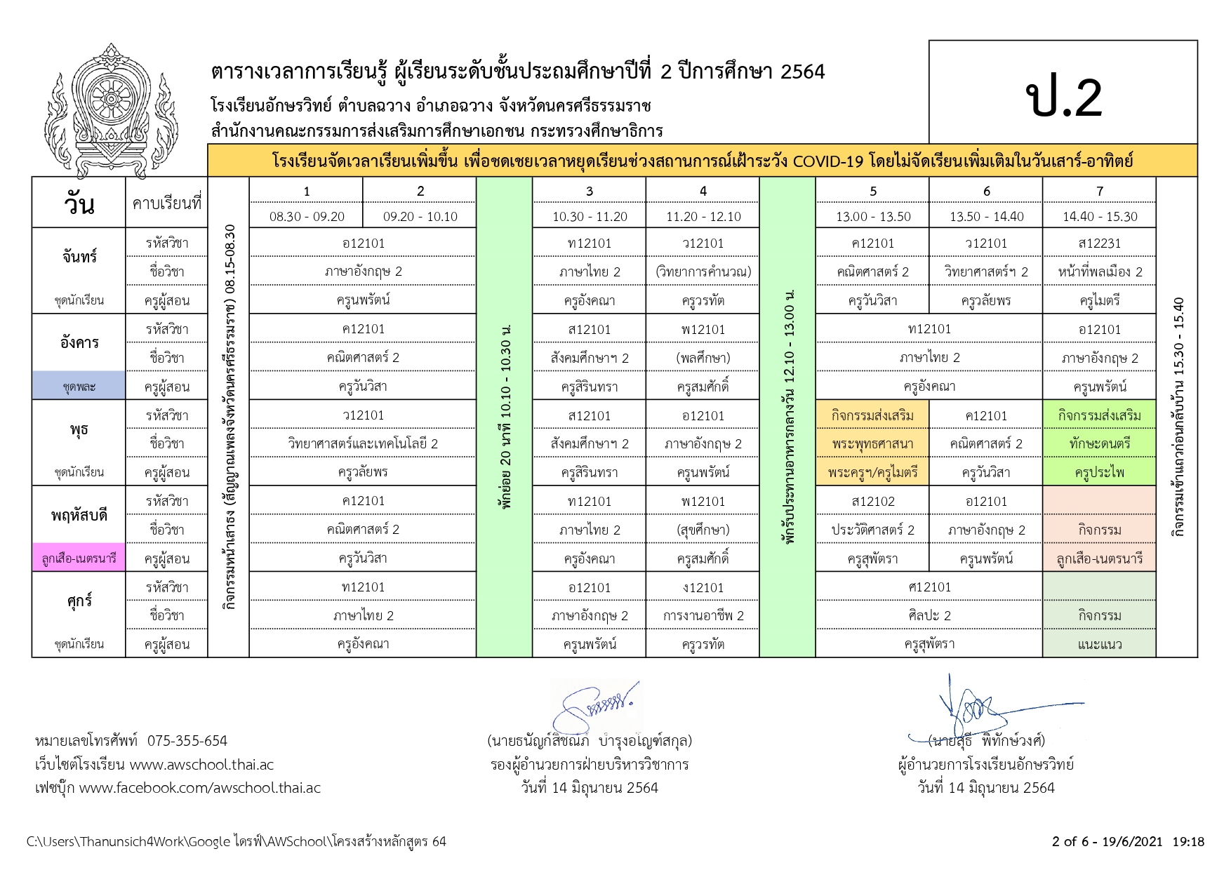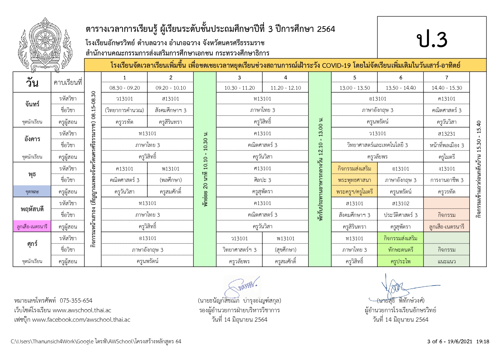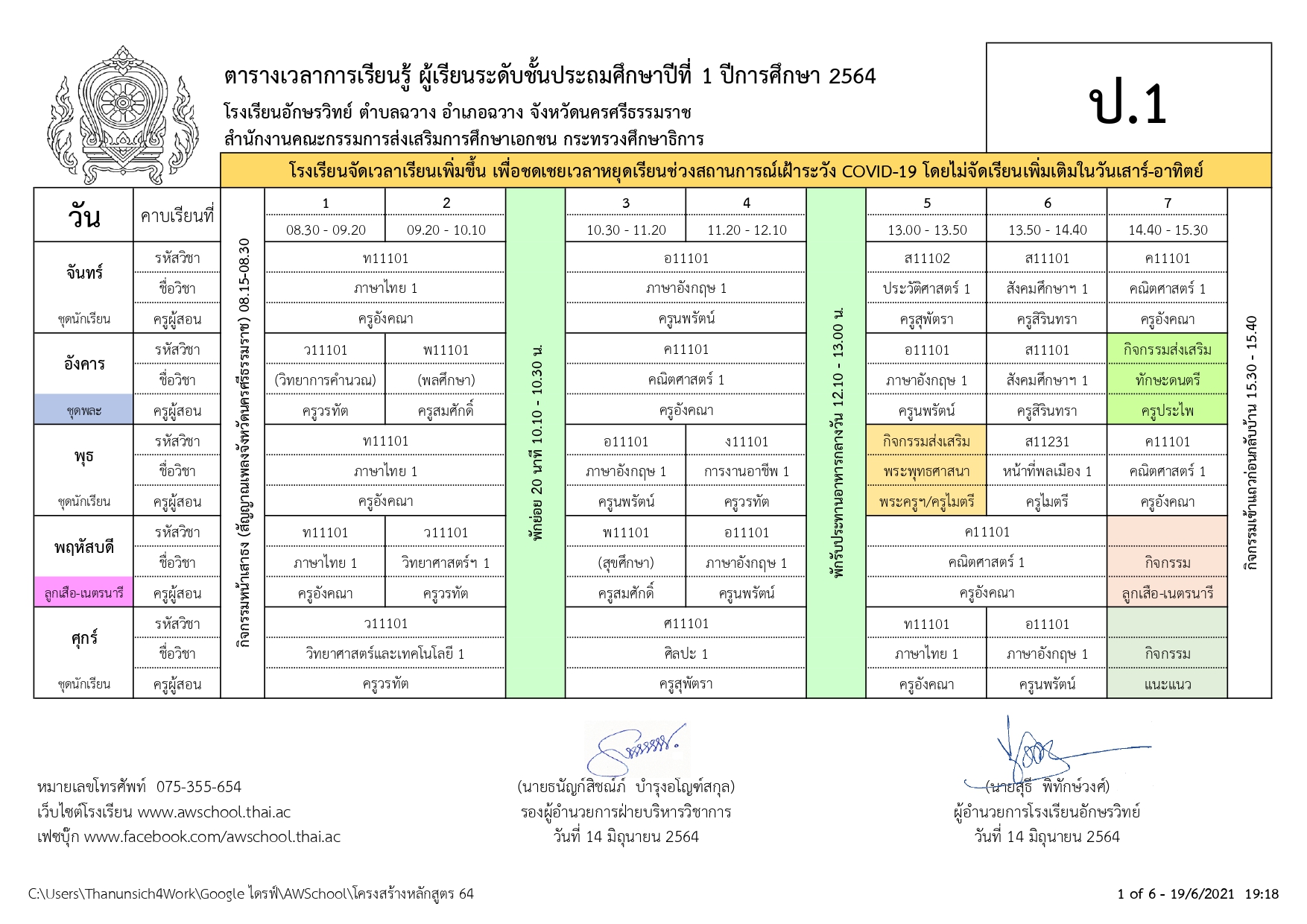 | ตารางเรียน ปกศ.2564 | ครั้ง | วันที่ | ||