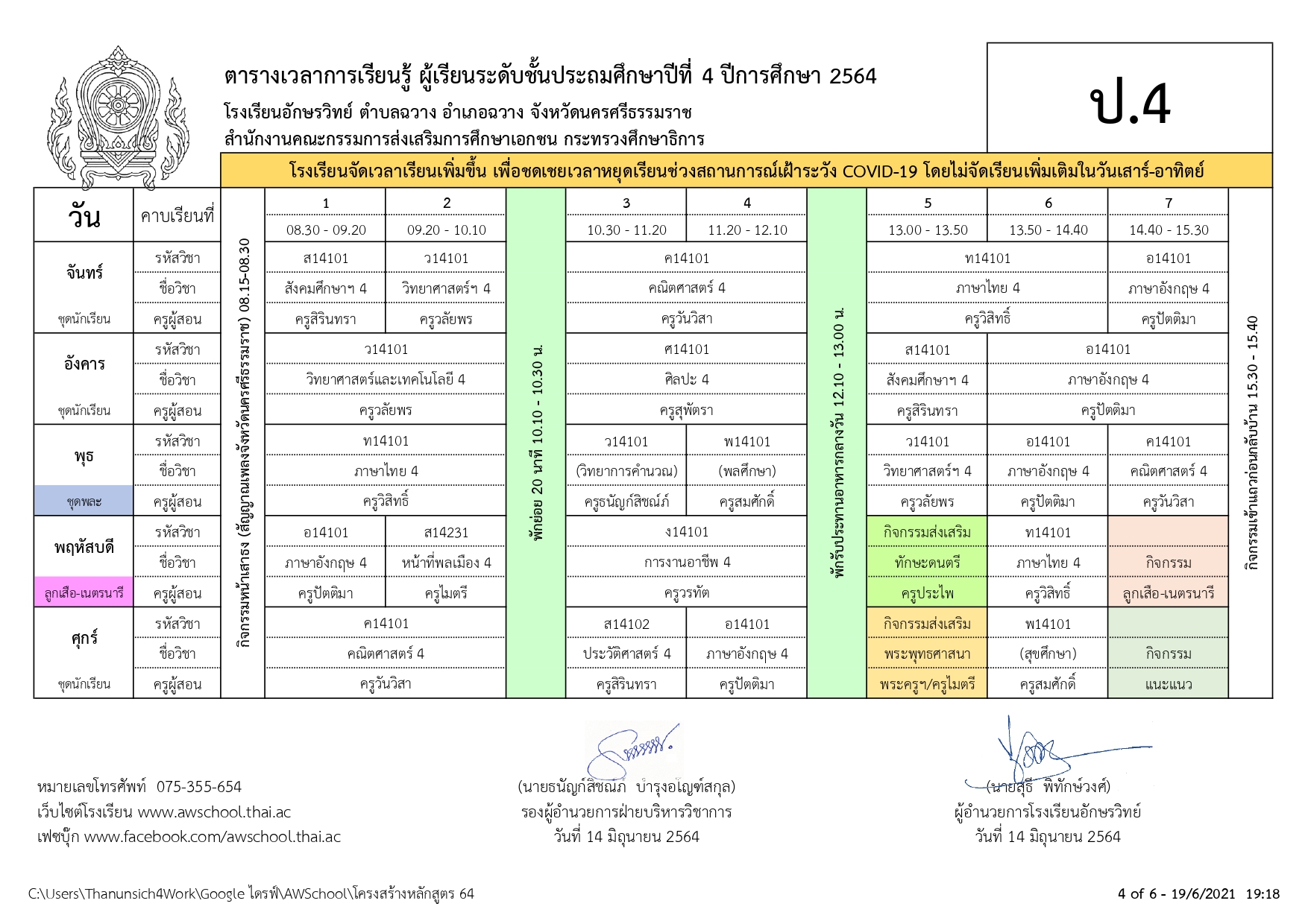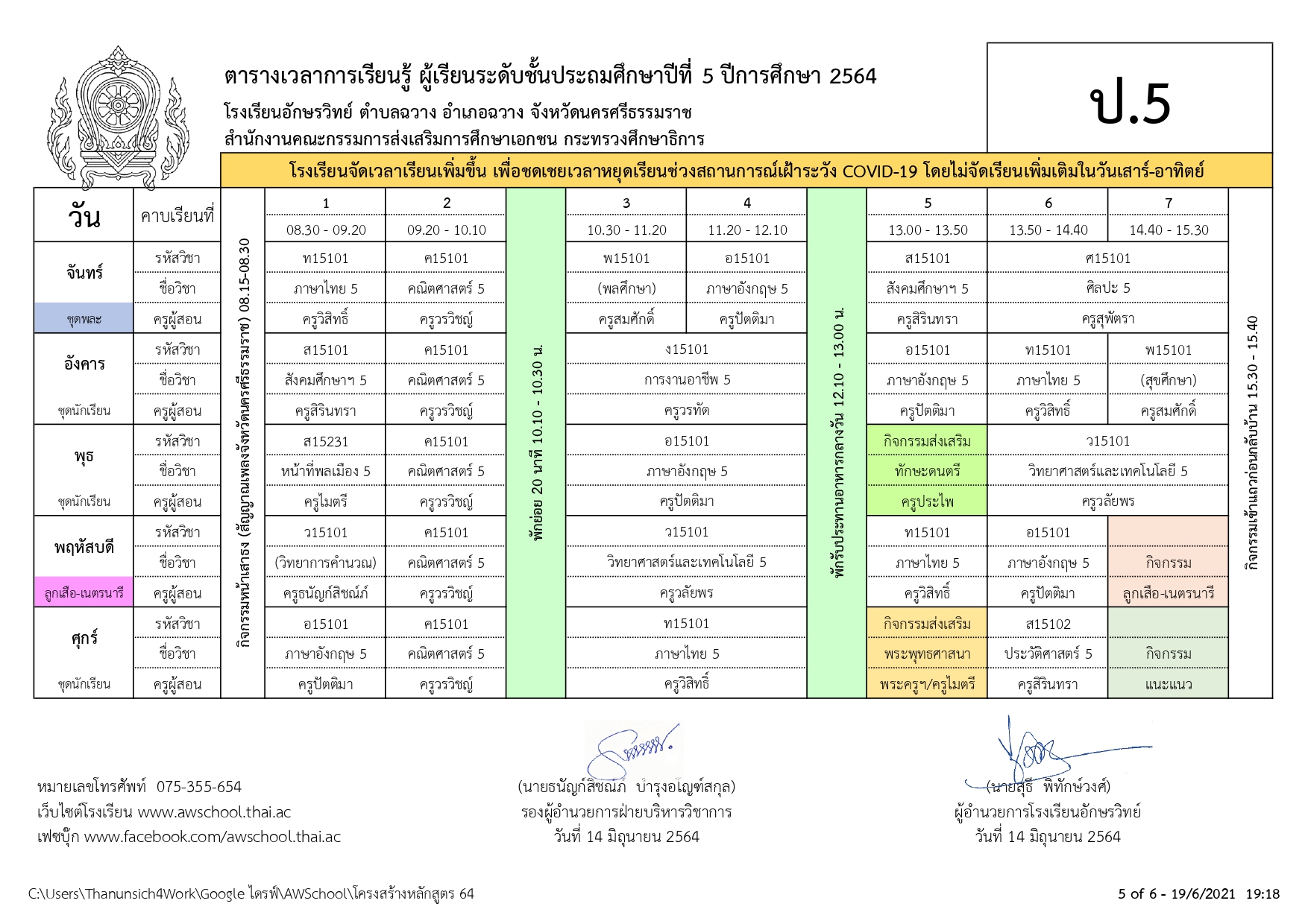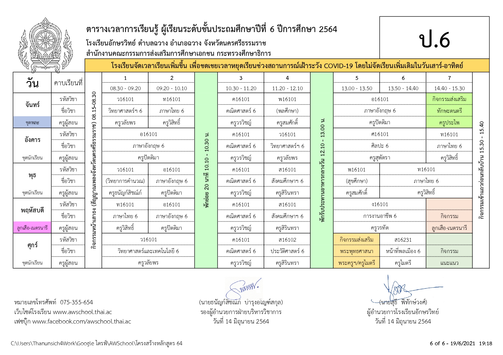 | ตารางเรียน ปกศ.2564 | ครั้ง | วันที่ | ||